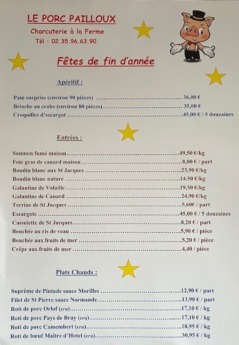 Depuis 2010, le magasin LE PORC PAILLOUX vous ouvre ses portes le vendredi et le samedi à Baons Le Comte (76190). Charcuterie, plats préparés et buffets froids sont élaborés au sein de notre exploitation familiale et sont vendus directement à la ferme, sans intermédiaires. Retrouvez également les viandes, volailles et produits Locaux de nos partenaires voisins.